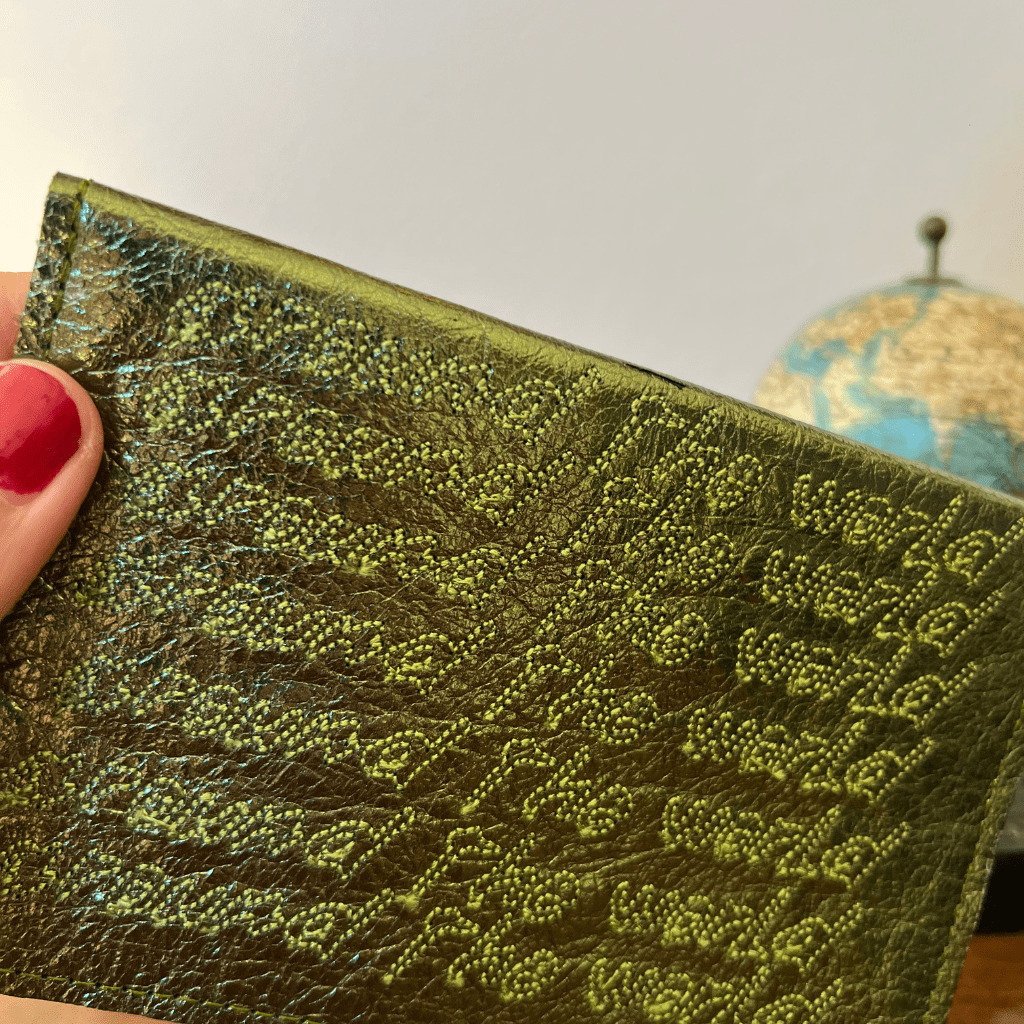Le porte-passeport en cuir avec une broderie décorative, un accessoire pratique et fun.