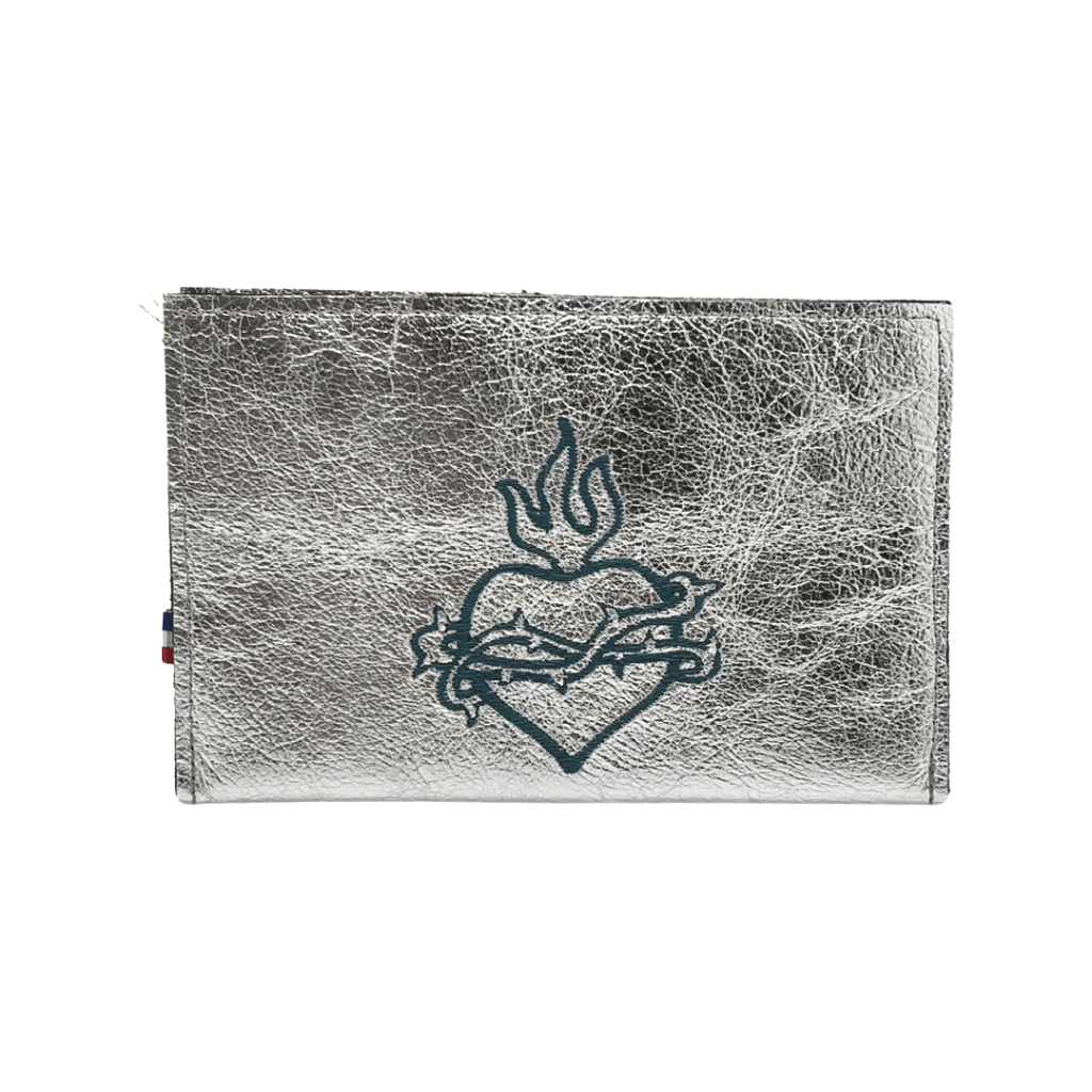 Cuir argent avec la broderie d’un coeur Ex-Voto.