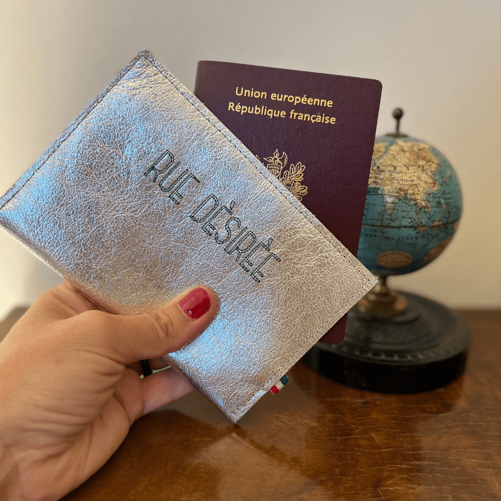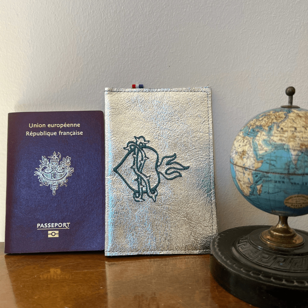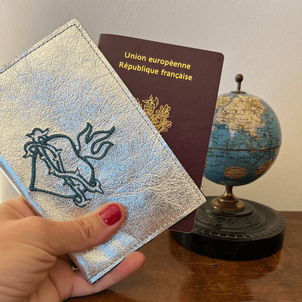 Le porte-passeport en cuir avec une broderie décorative, un accessoire pratique et fun.