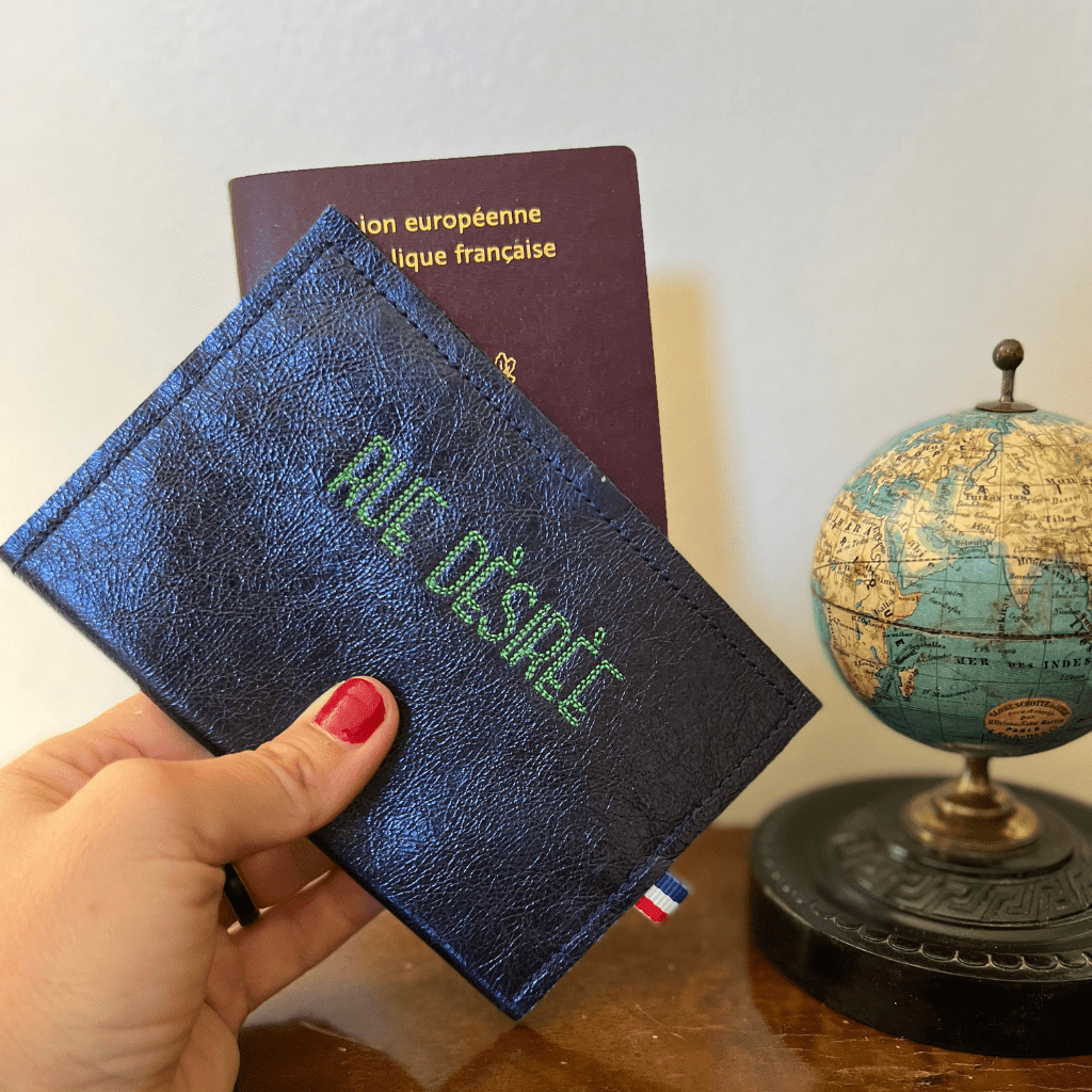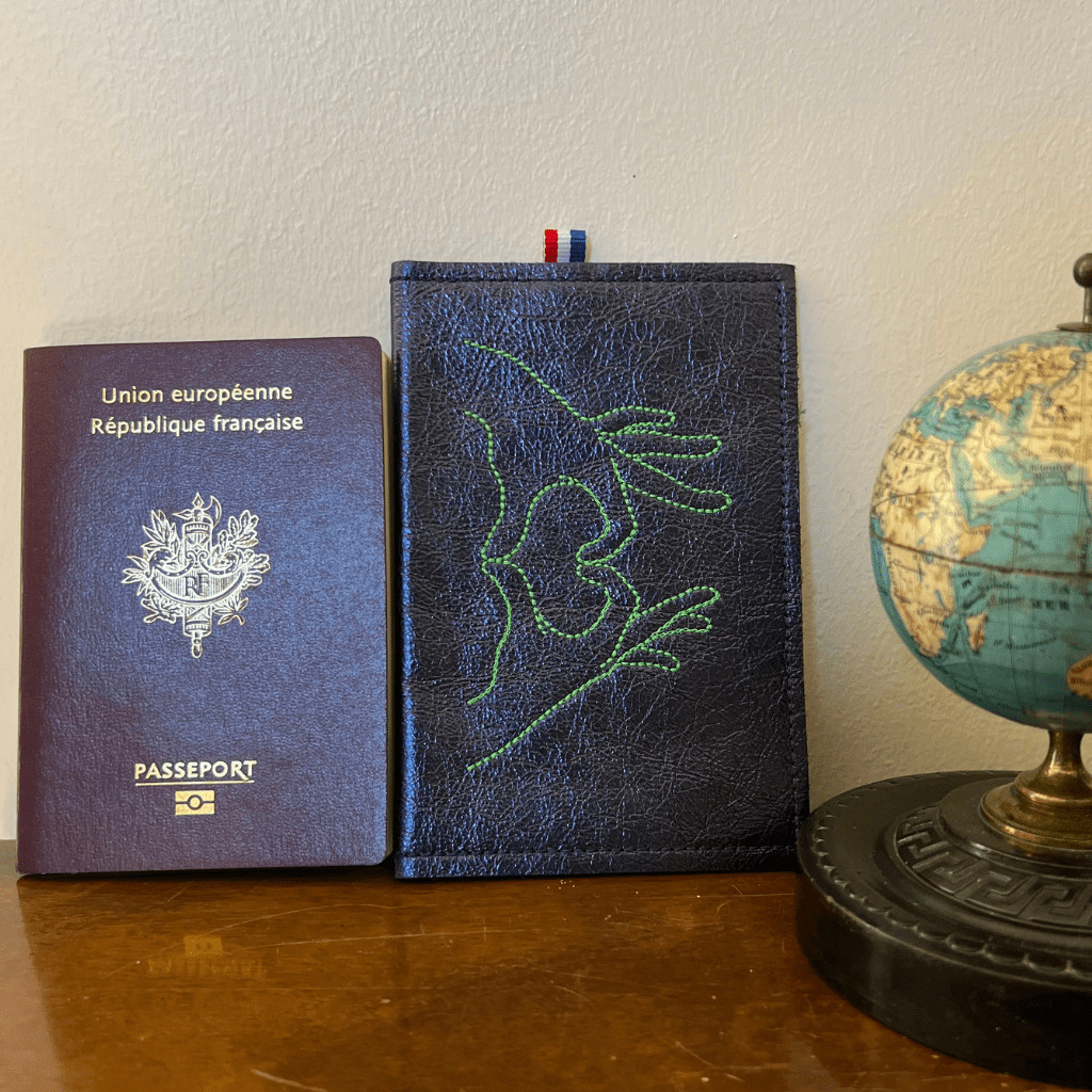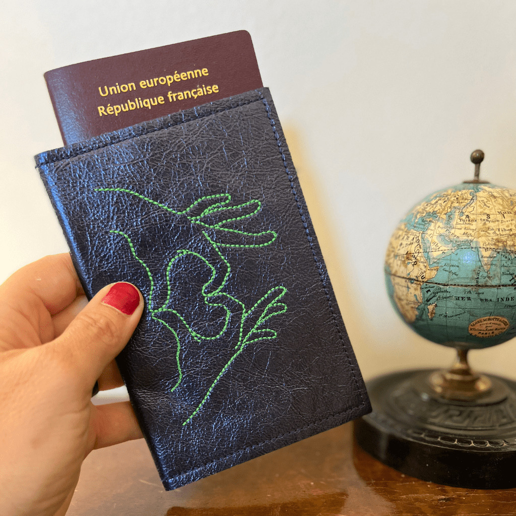 Le porte-passeport en cuir avec une broderie décorative, un accessoire pratique et fun.